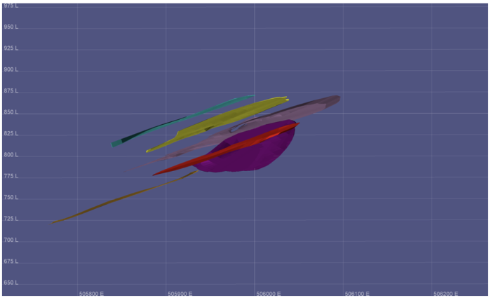 - Modelling shows La Ivana is a complex of six parallel stacked veins grouped within an interval of 50 to 75 metres wide.