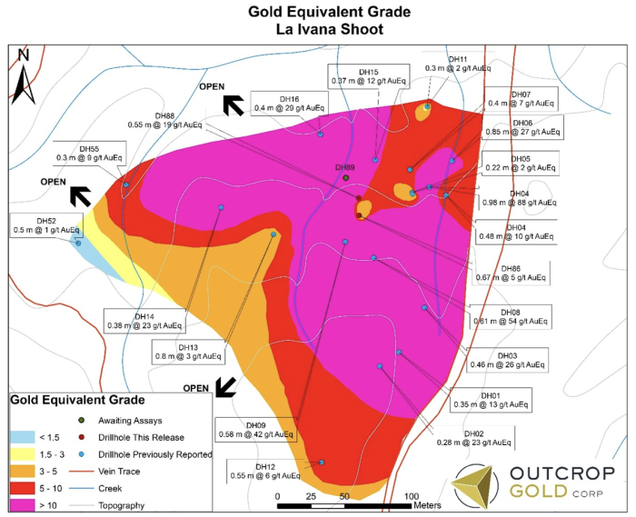 March 31, 2021 – Vancouver, BC – Outcrop Gold Corp. (TSXV:OCG, OTCQX:OCGSF, DE:MRG1) (“Outcrop”) is pleased to announce that delineation drilling in La Ivana on its 100% owned Santa Ana project in north Tolima, Colombia, has commenced and confirms good continuity of vein-shoot structure and grade over hundreds of metres.