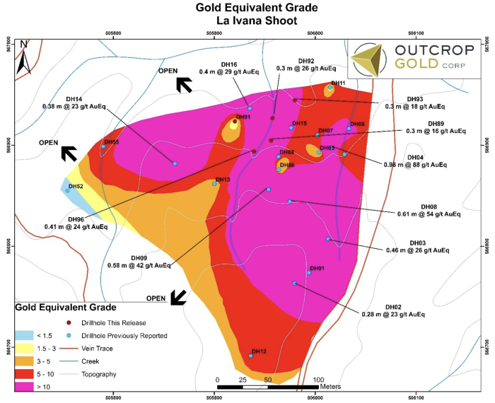April 21, 2021 – Vancouver, BC – Outcrop Gold Corp. (TSXV:OCG, OTCQX:OCGSF, DE:MRG1) (“Outcrop”) is pleased to announce results from five holes from continuing delineation drilling in La Ivana, and an update on exploration drilling on its 100% owned Santa Ana project in north Tolima, Colombia.