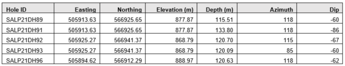 Table 2. Collar and survey table for recent delineation drilling from La Ivana: