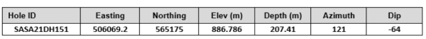 Table 2. Collar and survey table for San Antonio deeper drilling (DH151).