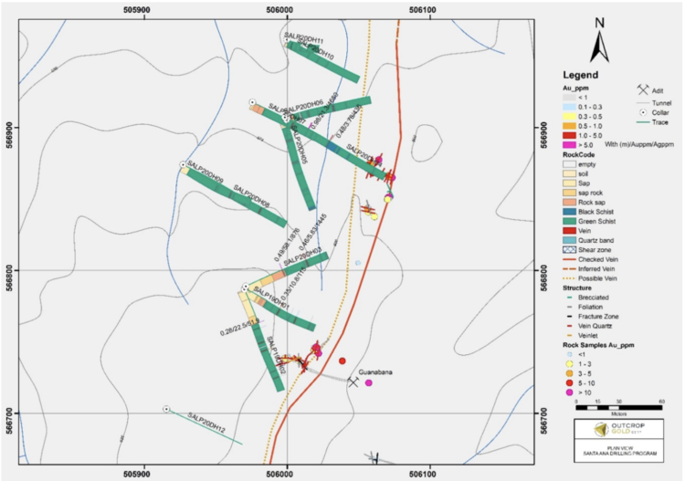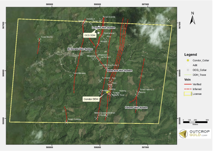 Outcrop Gold Discovers New High Grade Vein System Including Drilling 1.0 Metre Of 21 Grams Gold Per Tonne And 4,608 Grams Silver Per Tonne At Santa Ana