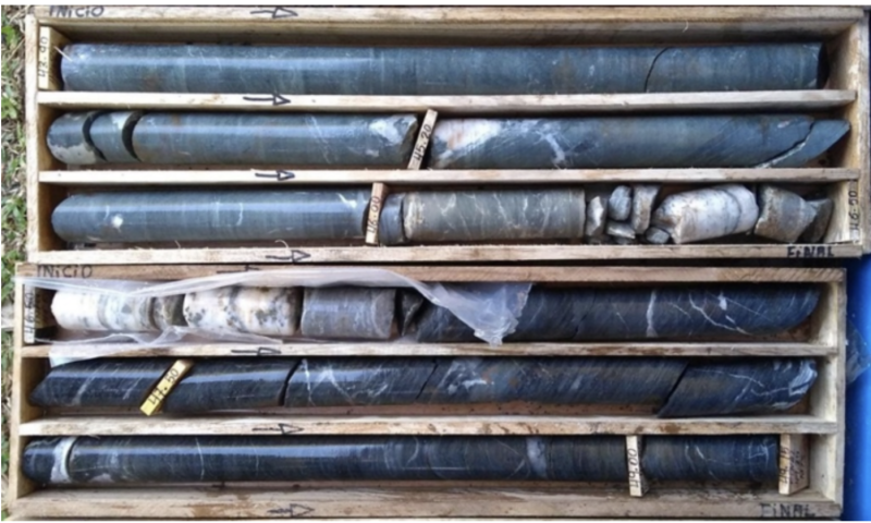 Importantly the holes drilled from the northern drill platform have all intercepted epithermal veins with similar textures, mineralization (pyrite-galena-sphalerite) and alteration (photo 3) to those intercepted in veins further to the South. This demonstrates continuity of the La Porfia Vein along a strike length of approximately 200 m with the vein open to the north and south with a projected cumulative strike length of 2,400m. Veins intercepted in hole 7,8 and 9 together with vein outcrops and tunnels demonstrate down-dip continuity of the La Porfia Vein over a 150 m distance with the veins open to depth.