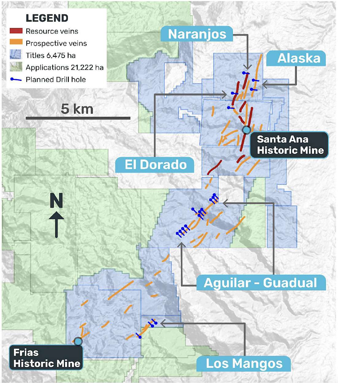 The program will focus on extending mineralization along strike and down dip at El Dorado, including veins not previously included in the 2023 maiden resource due to insufficient drill density. Additionally, we will explore untested veins, such as the promising Aguilar-Guadual target, and Los Mangos area to the southwest, identified by numerous high-grade channel samples. This comprehensive approach aims to underscore the scalability of the Santa Ana project and its potential for substantial resource growth.