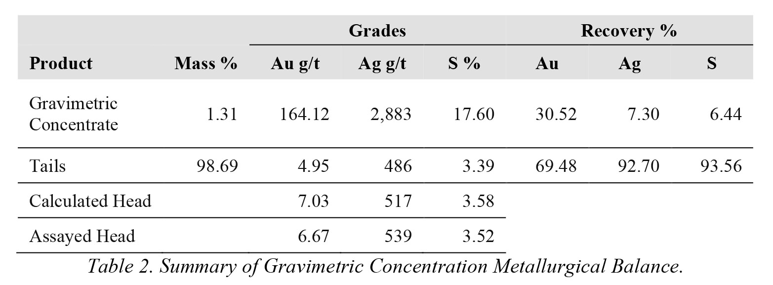 Tails from the gravimetric concentration test will be processed further using conventional flotation, accounting for 92.7% of silver and 69.48% of gold. The mineralogical characterization from Santa Ana has revealed that 88% of the silver is present as argentite, a silver sulfide (refer to News Release dated November 03, 2022). This finding suggests the potential for an increase in the overall recovery of silver when combining gravimetric concentration with conventional flotation methods.