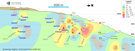 - Step-out drilling, demonstrated Outcrop Silver’s ability to identify high-grade silver mineralization in blind targets and reinforcing the potential that remains open along strike and at depth.
