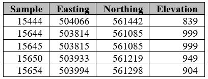 Table 5. Collar and survey table for drill holes reported and referred to in this release. All coordinates are UTM system, Zone 18N, and WGS84 projection.