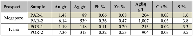 Initial standard flotation tests were performed on sample PAR-2 from the Megapozo shoot in Paraiso vein, since Outcrop anticipates a significant resource contribution from this target in the Santa Ana resource estimation. The results show average recoveries of 94% for silver and 96% for gold in concentrate, grading 6,540 grams per tonne of silver and 82.94 grams per tonne of gold.