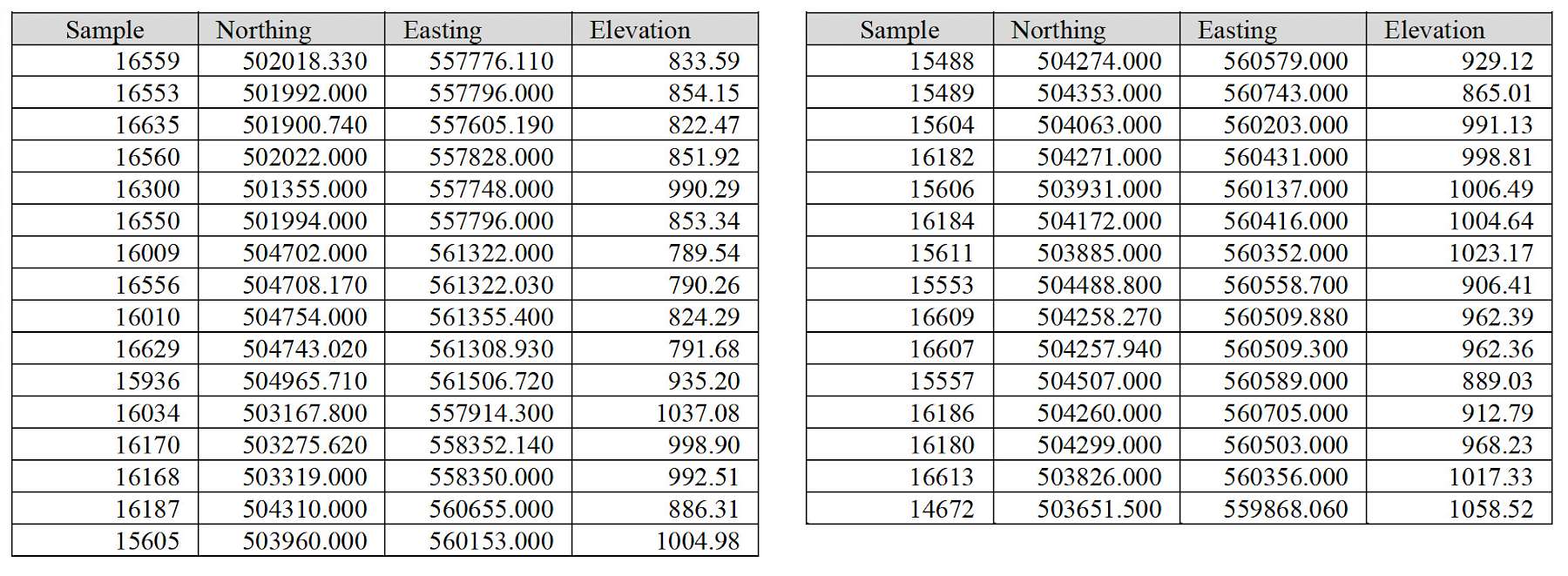 - La Ye, a vein system with 500 metres of strike length showing remarkable grades, such as 4,898 grams per tonne of silver equivalent in chips samples and up to 2,553 grams per tonne of equivalent silver in channel samples (Table 1).
