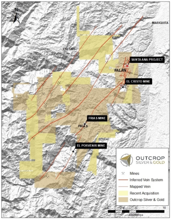 Outcrop has increased the footprint of its Santa Ana project in the productive Mariquita district by adding over 8,000 hectares of claims to consolidate a total land package of 36,255 hectares. The most recently added claims extend the property boundaries to the west-northwest and fill-in gaps in the south and eastern portions of the Santa Ana project.