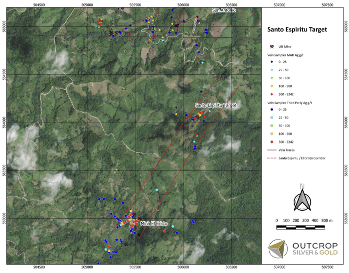 - A new target Espiritu Santo is 1,100 metres south of Outcrop’s San Antonio discovery.