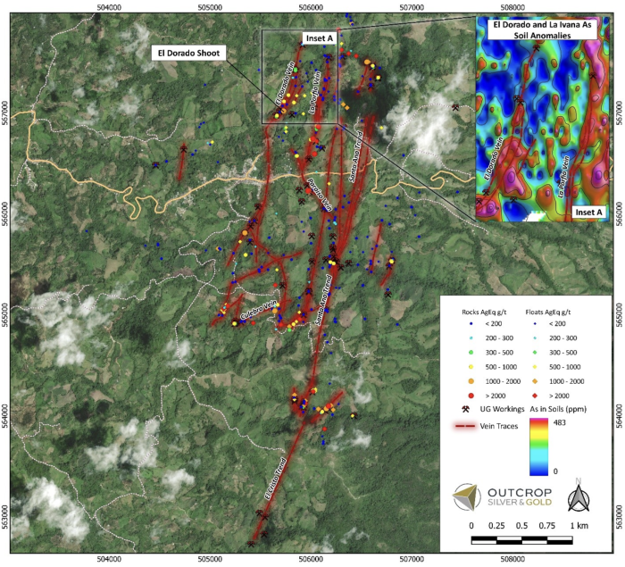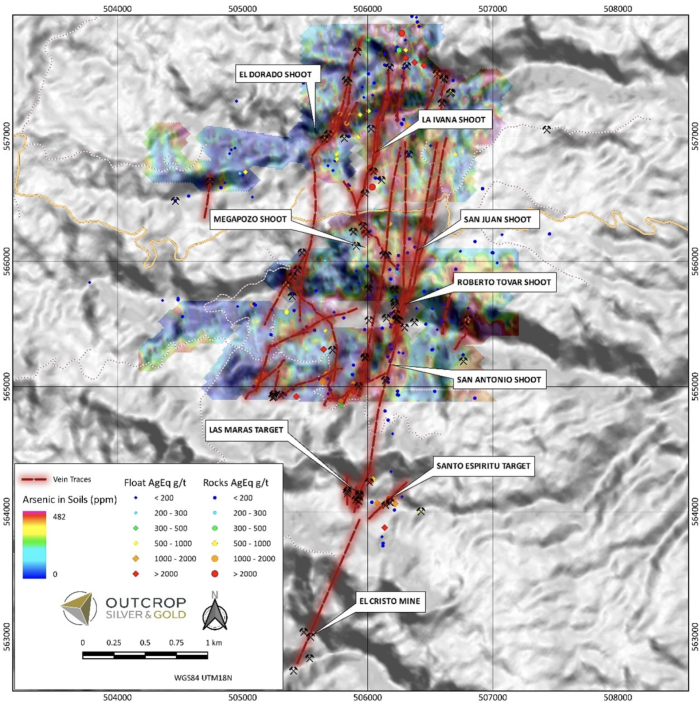 September 7, 2021 – Vancouver, BC – Outcrop Silver & Gold Corporation (TSXV:OCG, OTCQX:OCGSF, DE:MRG1) (“Outcrop”) is pleased to announce results from surface sampling and mapping that extends seven veins up to 1,000 metres to the north of the northernmost El Dorado discovery.
